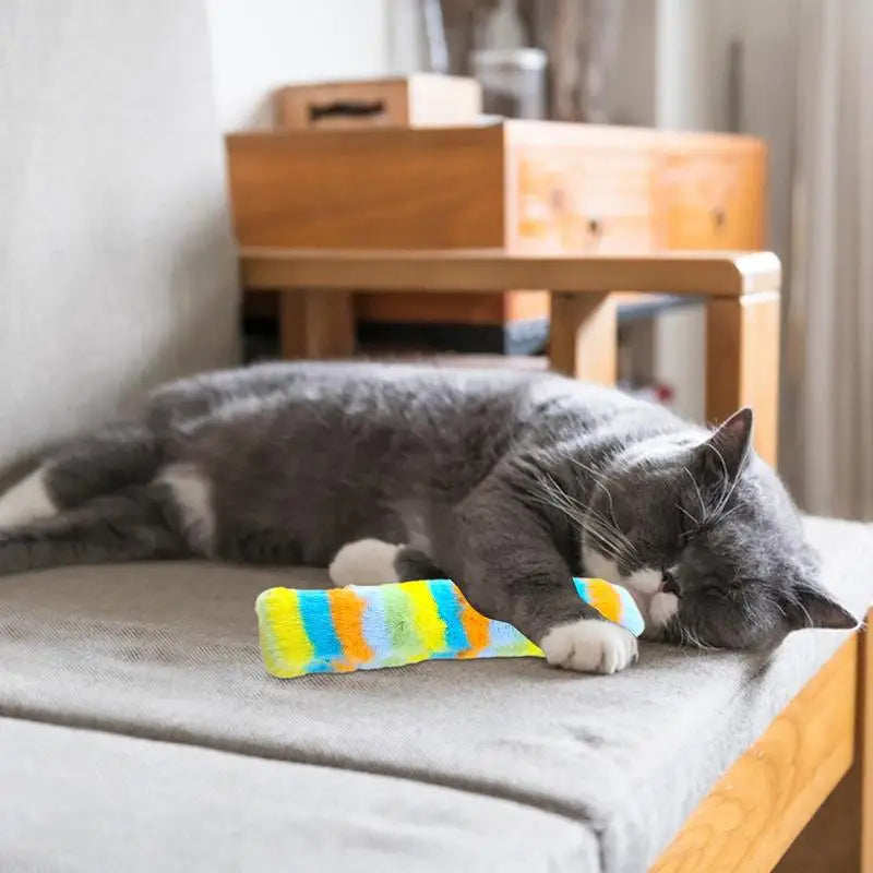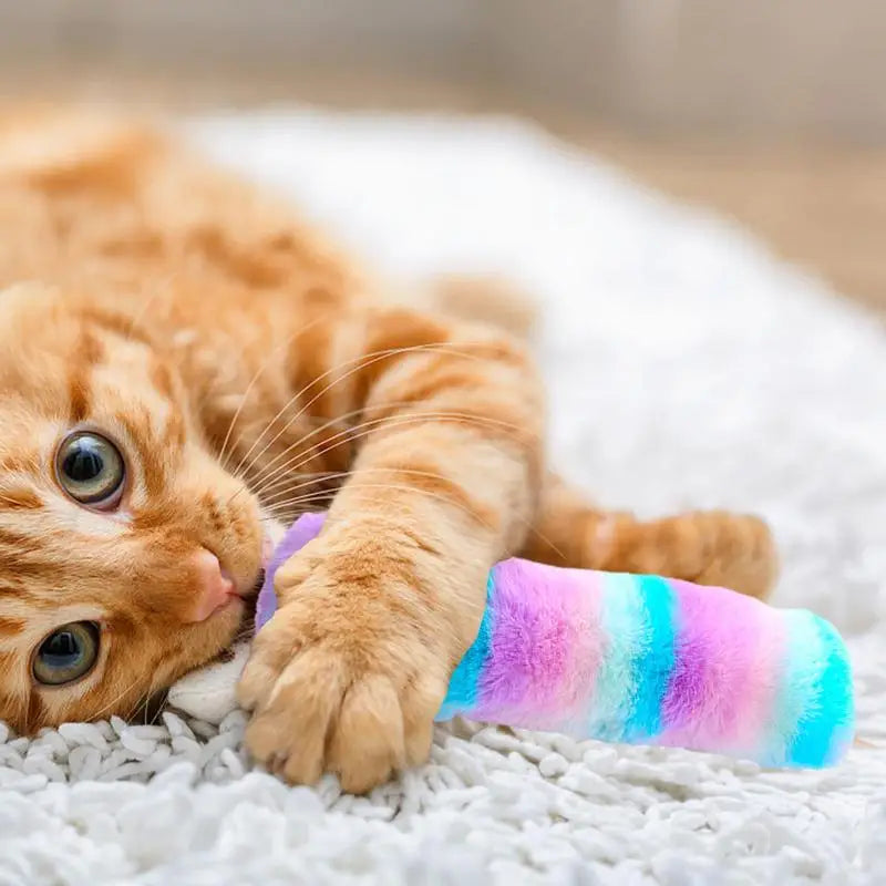 Give your cat the playtime they deserve! This colorful plush toy is soft, durable, and filled with catnip for hours of fun. Perfect for chasing, chewing, scratching, or cuddling – loved by both kittens and adult cats.🐾