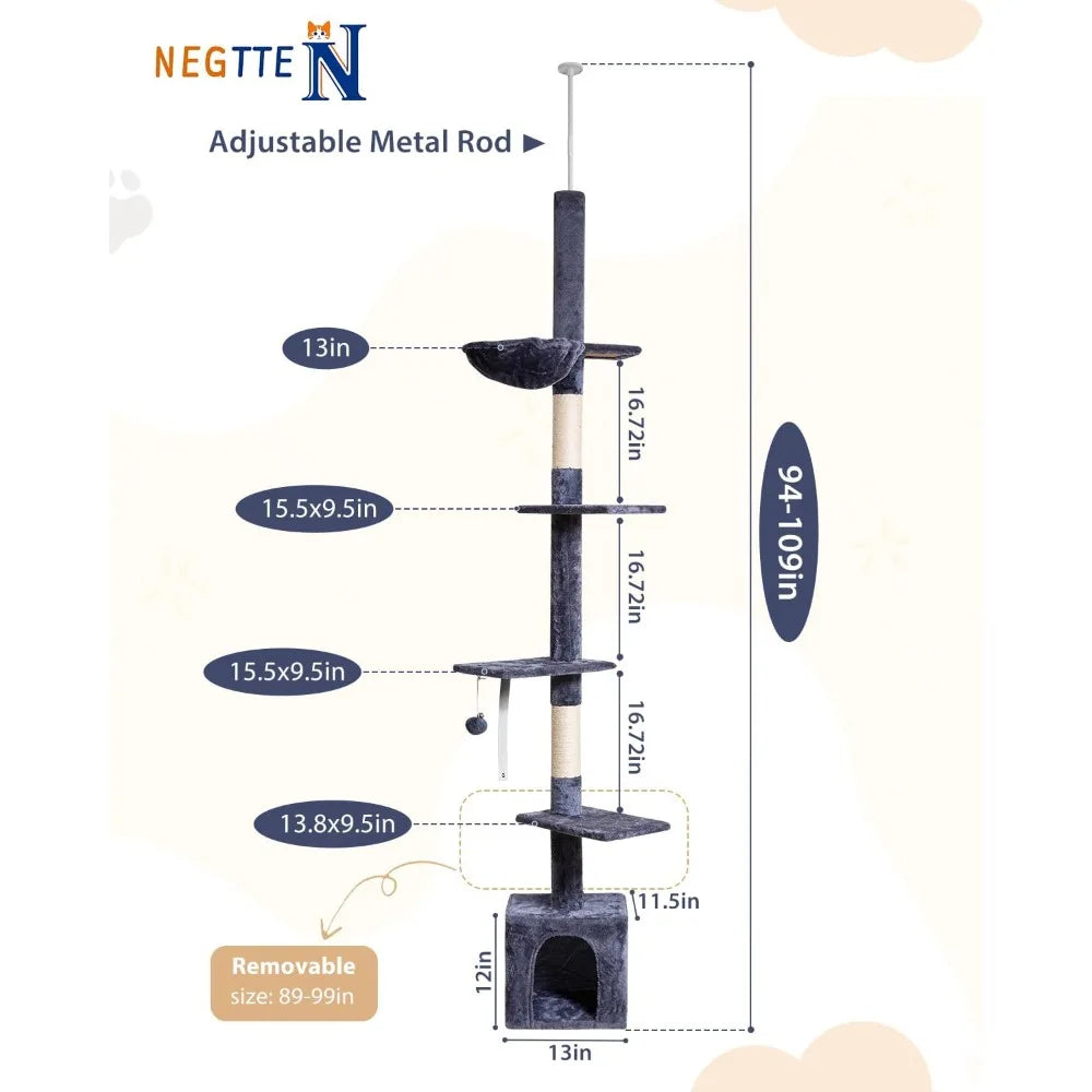 Floor to Ceiling Cat Tree, 5-Tier Height (95-109 inches) - Adjustable Cat Climbing Tower with Sisal Scratching Posts, Cat Condo,